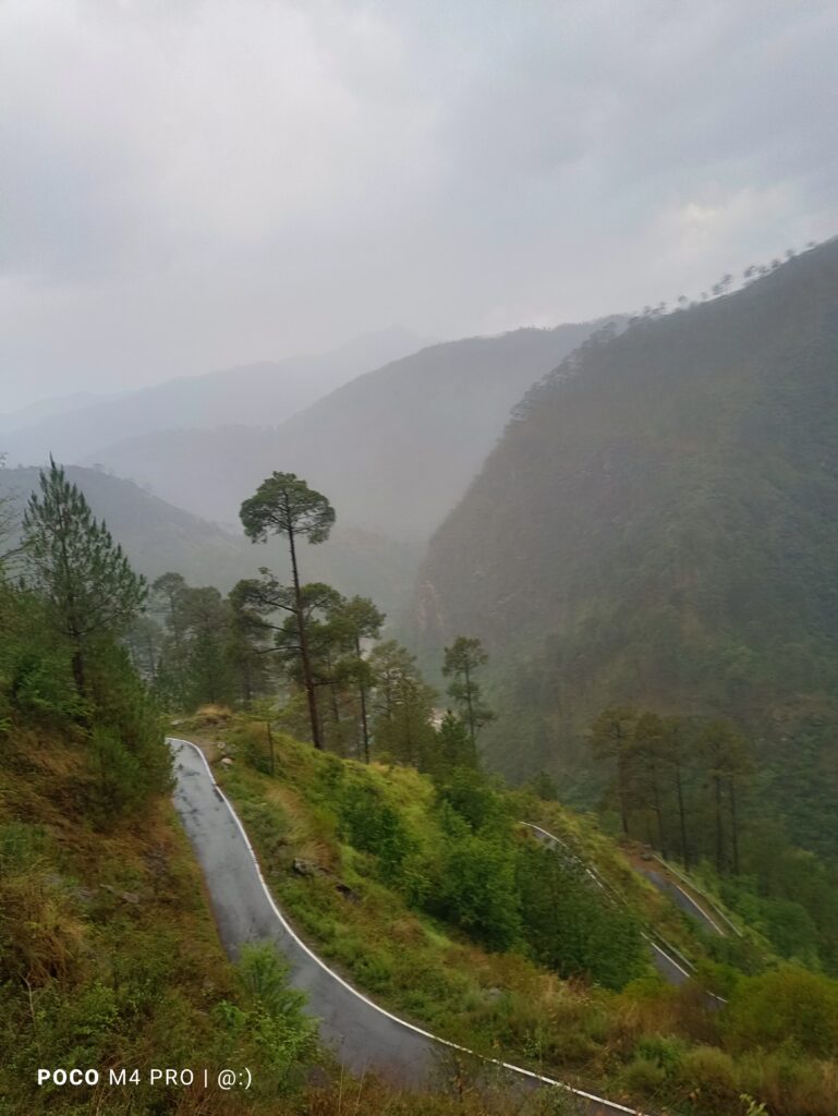 Once the bus started again, the real mountain journey began. We entered narrow roads with steep turns and high hills, and it started raining too. I could feel my fear coming back. My heartbeat was fast and my hands were cold. I had always been afraid of heights and I had never imagined traveling through such roads alone. At that moment, I realized that solo traveling is also about fighting those silent fears inside us.